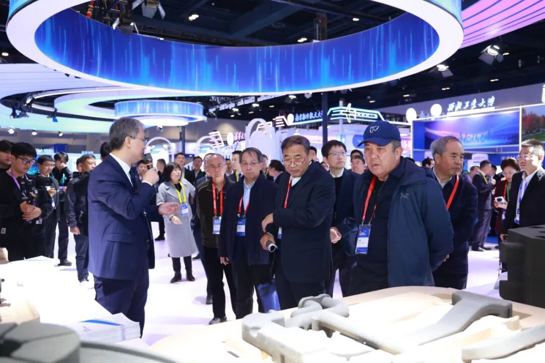 在集團黨委書(shū)記、董事長(cháng)秦漢軍陪同下,工信部副部長(cháng)熊繼軍,工信部、科技部、教育部、國防科工局等相關(guān)部門(mén)領(lǐng)導,北京理工大學(xué)姜瀾、西北工業(yè)大學(xué)張衛紅、清華大學(xué)雒建斌、哈爾濱工業(yè)大學(xué)鄧宗全、大連理工大學(xué)賈振元、中國石油天然氣股份有限公司劉合、沈陽(yáng)飛機設計研究所王向明等院士專(zhuān)家,中國機械工程學(xué)會(huì )常務(wù)副理事長(cháng)王國彪等行業(yè)領(lǐng)導蒞臨集團展臺指導交流。各位領(lǐng)導專(zhuān)家詳細了解了集團在激光制造、增材制造領(lǐng)域的裝備技術(shù)創(chuàng )新成果,以及在材料、工藝、裝備全產(chǎn)業(yè)鏈的布局情況,并對集團在支撐國家裝備制造能力提升、服務(wù)國家重大戰略需求中的工作成效給予充分肯定。